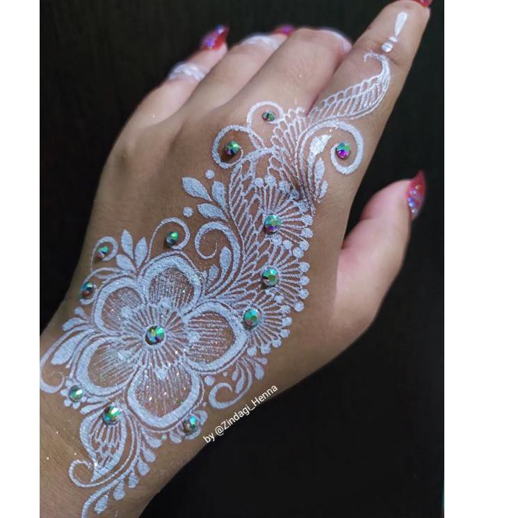 Model henna tangan warna putih terbaru.